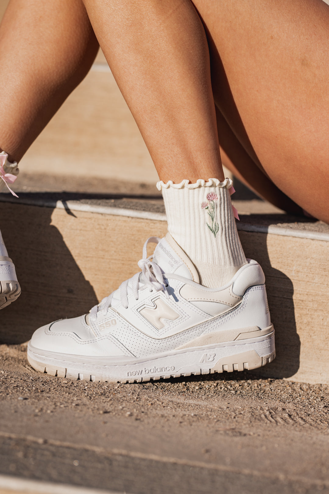 NEW Pink & Cream Ruffle Grip Socks with Silicon Squish